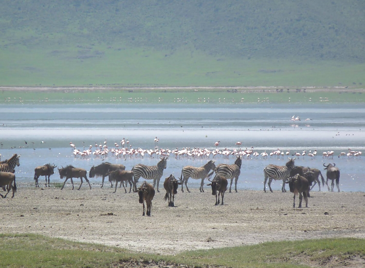 Other animals found in this crater include hippos, hyenas, warthogs, zebras, elands, gazelles, wildebeests, just to name a few. This makes Ngorongoro Crater probably the best site in Tanzania to spot and watch the big five as well as other wild species more easily.